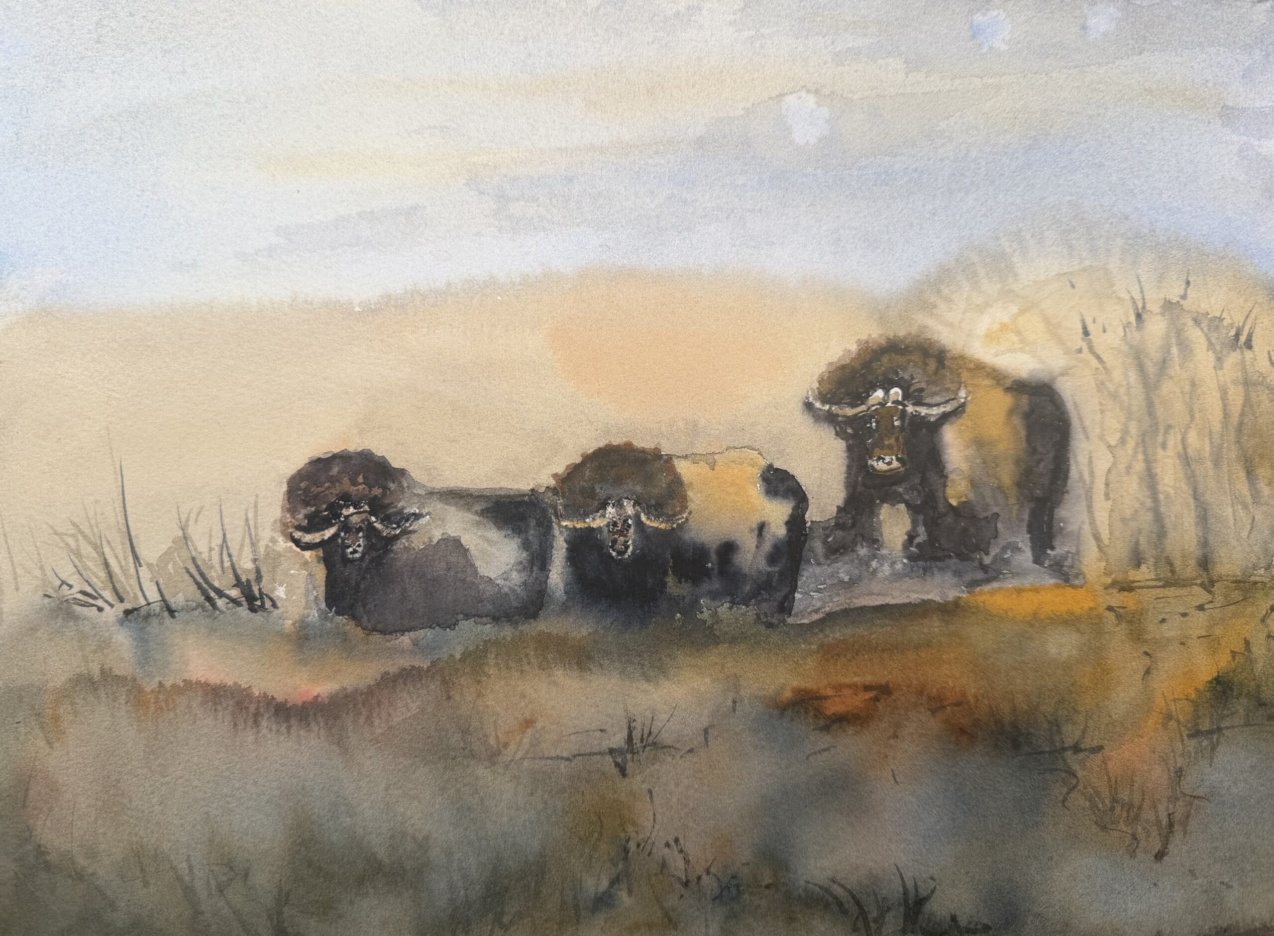 Mine bilder maler jeg med ark ifra små størrelser, 30*20cm, men for det meste stående og liggende i ark-størrelser 50*35 cm og opp til ark på ca. 90*70 cm. Med passpartout og ramme kan akvarellene kreve et betydelig større areal.